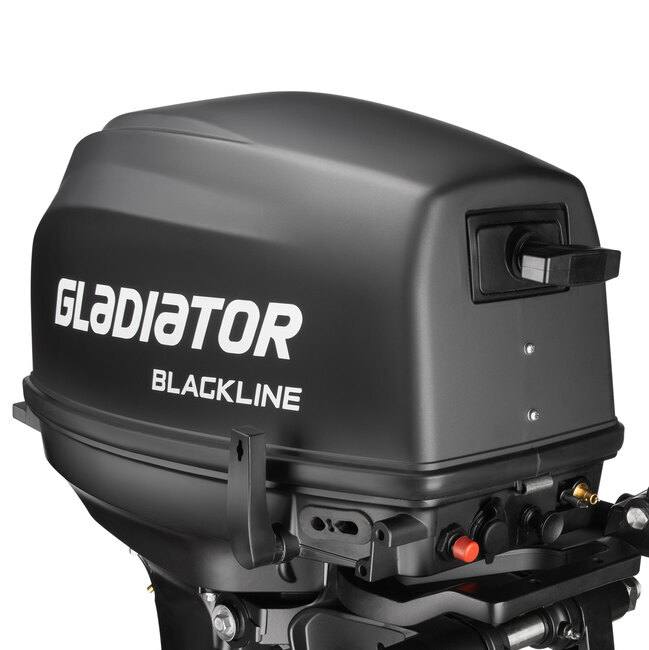 Лодочный мотор Gladiator 9.9 FHS PRO в матовом чёрном исполнении, особо популярен среди тех, кто хочет управлять мощным двигателем и не регистрировать его в ГИМС. Внешний топливный бак, объемом 24 литра, позволит ходить на средние и дальние береговые дистанции.