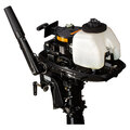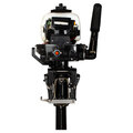 Мотор запускается ручным стартером, а управляется стандартным румпелем с поворотной ручкой газа (гашеткой мотоциклетного типа) с антипроскальзывающими насечками.